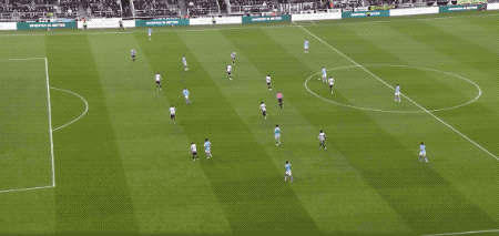 上半场的后半段,两队局面反转,曼城完成了11次射门,围着纽卡斯尔的禁区狂轰滥炸,纽卡斯尔只有1次射门。