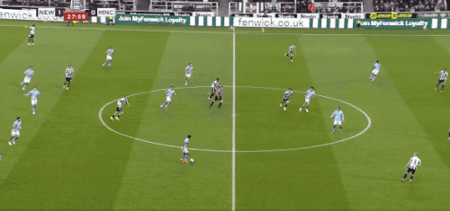 上半场的后半段,两队局面反转,曼城完成了11次射门,围着纽卡斯尔的禁区狂轰滥炸,纽卡斯尔只有1次射门。