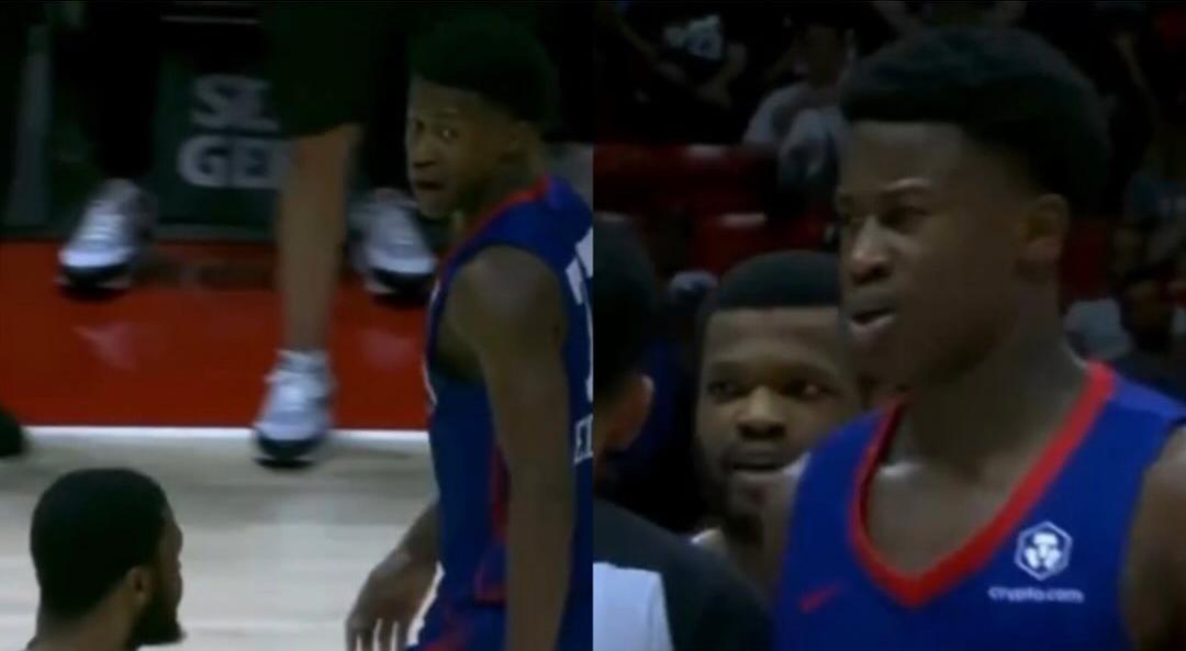 在比赛中,埃奇库姆和爵士落选秀哈克莱斯(Elijah Harkless)发生口角,美媒解读埃奇库姆的唇语:“你在担心我?我是探花,你呢?你是真的惨!”